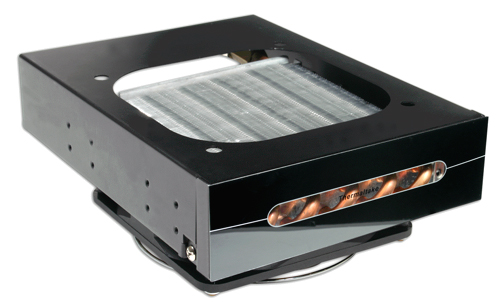 Kit del radiatore Thermaltake Big Radiator da 12 cm con lamelle in alluminio e tubi in rame. Il radiatore č giā equipaggiato di una ventola silenziosa da 12 cm, integrato in un frontalino in alluminio che si integra in un bay da 5.25". La ventola sporge nel bay inferiore. Connettori quick install da 1/4" e 3/8".