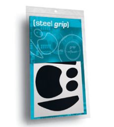 Lo steel grip consiste di un kit di 5 toppe in gomma adesiva, che collocate sul mouse in corrispondenza della presa miglioano la presa, risolvendo anche i problemi legati alla sudorazione.