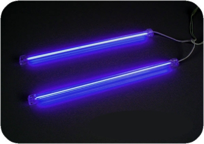 Set composto da una doppia lampada UV lunga 10 cm, una staffa con interruttore e reattore di accensione.
