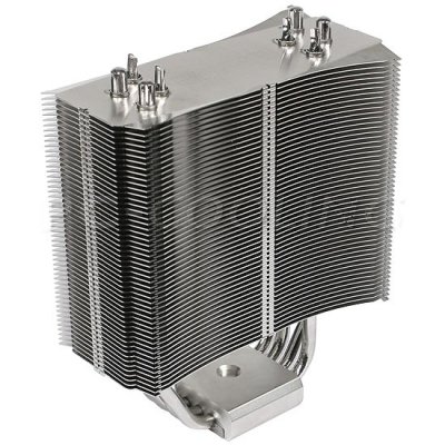 Dissipatore di notevoli dimensioni, ideale quando č richiesta una decisa peformance di dissipazione, č dotato di 3 doppie heat-pipe per il trasporto del calore su tutta la superficie delle alette.