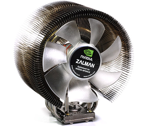 Riduce la temperatura di 10/20° rispetto al dissipatore di stock Intel e di 4° rispetto alla serie 9500. Il dissipatore č formato da una serie di lamelle in rame anodizzato, di spessore ultrasottile (0,2 mm) per ridurre il peso e la resistenza all'aria, che circondano 3 heat-pipe a forma di 8. La ventola da 120 mm, costruita su cuscinetti č termocontrollata e molto silenziosa oltre che illuminata da luce verde. Nella confezione viene fornita anche la Zalman Super Thermal Grease ZM-STG1.