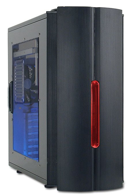 Innovativo case, costruito con corpo in acciaio e frontale in alluminio, con i due sportelli anteriori, meccanicamente connessi, che si aprono simultaneamente. Buona ventilazione, alloggiamento hard disk ad inserimento frontale (non interferiscono con la scheda madre). Predisposizione per il raffreddamento a liquido (esterno).