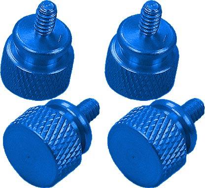 Set di 4 viti per pannelli laterali del case color blu elettrico. Permettono di montare e smontare i pannelli laterali senza cacciavite.