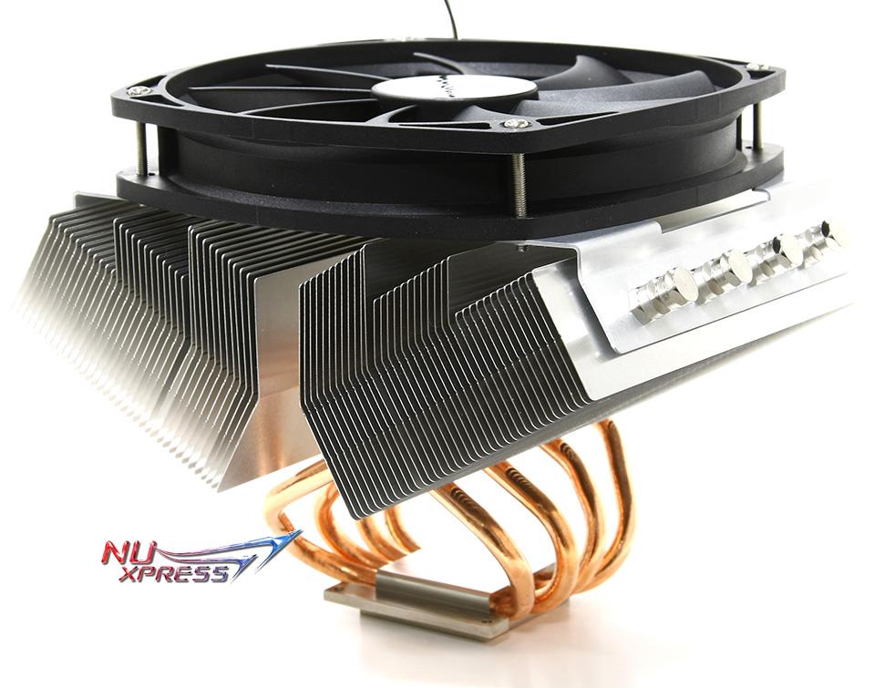 8 heat-pipe trasortano il calore dal socket a due radiatori laterali collocati, abliquamente in modo da deviare il flusso dell'aria sui componenti laterali al socket, raffreddando anche loro.