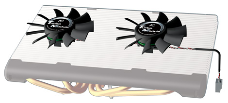 Modulo aggiuntivo di facile installazione per rendere i dissipatori Accelero S1 e S2 da passivi in attivi grazie a due ventole aggiuntive.