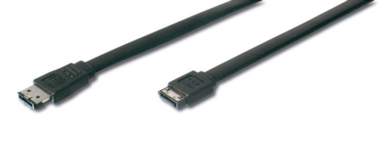 Cavo di connessione esterna Serial ATA (e-SATA) indispensabile per avere connessioni veloci tra PC e box esterni SATA collegando direttamente il cavo alle connessioni Sata sulla scheda madre o viceversa è possibile collegare gli Hard Disk alla connessione esterna e-Sata del PC.