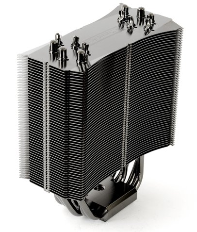 Dissipatore di notevoli dimensioni, ideale quando č richiesta una decisa peformance di dissipazione, č dotato di 3 doppie heat-pipe per il trasporto del calore su tutta la superficie delle alette.