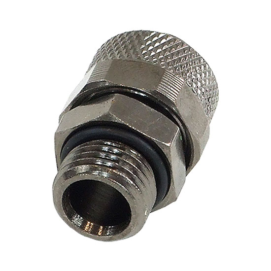 Raccordo realizzato in ottone nickelato nero con serraggio a vite per tubi con diametro esterno massimo da 13mm. Filetto 1/4 G