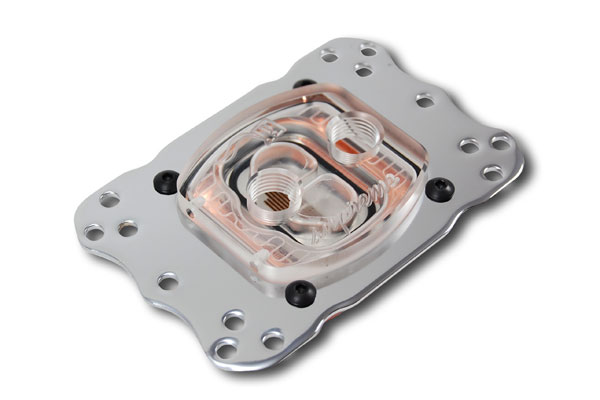 Il waterblock EK Supreme č caratterizzato da una base con 49 micro canali con un sottile diffusore che accelera la velocitā del flusso in ingresso favorendo la superficie di scambio termico.