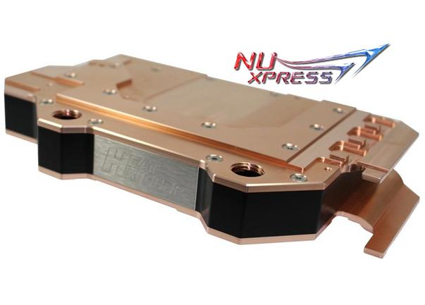 Waterblock realizzato in rame elettrolitico con struttura centrale in resina acetalica, raffredda efficacemente tutta la scheda. Tutte le RAM e la sezione di alimentazione sono raffreddate tramite l'uso di pad termici specifici forniti in bundle
