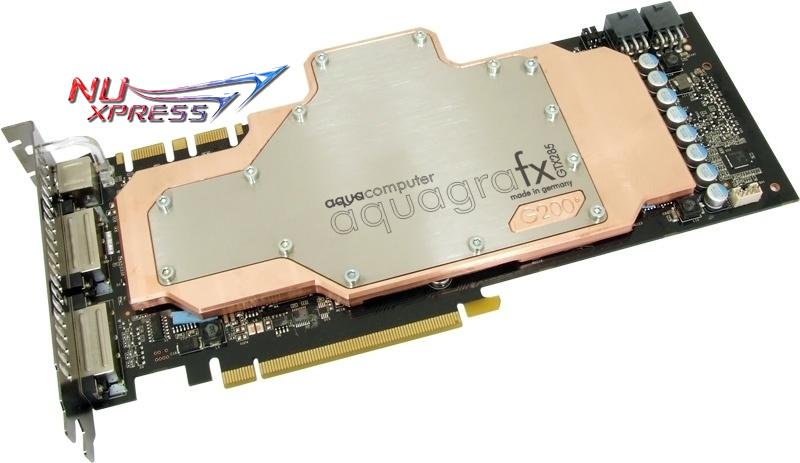 Waterblock con superficie di contatto completamente in rame per schede video Nvidia GTX 285 (G200b) reference design. Questo WB raffredda contemporaneamente GPU, memorie e mosfet di alimentazione. La sua struttura piatta consente di conservare la funzionalitą dello slot PCI adiacente alla scheda video.