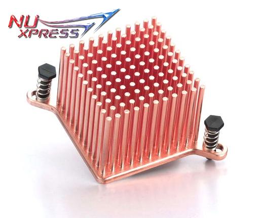 Dissipatore passivo per chipset completamente in rame con profilo alto per sfruttare al meglio il flusso d'aria delle ventole del case.