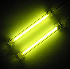 Set composto da una doppia lampada gialla lunga 10 cm, una staffa con interruttore e reattore di accensione.