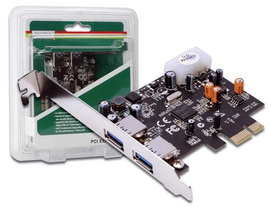 Scheda aggiuntiva per aggiungere 2 porte USB 3.0 (5Gbps) su un computer con slot PCIExpress. Con chipset NEC D720200. Puo' essere montato anche su pc low-profile (basso profilo) grazie alla staffa inclusa. Compatibile con dispositivi USB 1.1 e 2.0. Conforme alle specifiche PCI-Express 2.0. Interfaccia bus x1. Supporta PCI Bus Power Management Interface Specification revisione 1.2. Supporta: Windows 7, Vista, XP