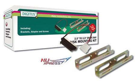 Per montaggio Hard Disk 2,5" nell'alloggiamento Hard Disk 3,5" di un PC. Con adattatore di alimentazione e staffe di adattamento da 2,5" a 3,5". L'adattatore permette la connessione di HD 2,5" a 44 poli su un cavo per HD 3,5" a 40 poli. Per Windows e MAC.