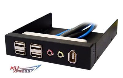 Pannello per slot 3.5" dotato di 4 porte USB, entrata microfono, uscita cuffie e 1 porta Firewire 1394. Rifinitura in alluminio di alta qualita'.