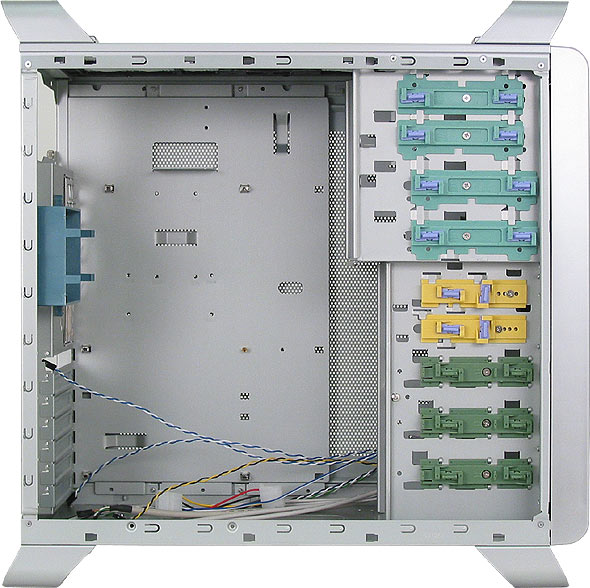 L'installazione delle periferiche è agevolata da ganci automatici scorrevoli, per un totale di 4 x 5,25", 2 + 3 x 3,5"